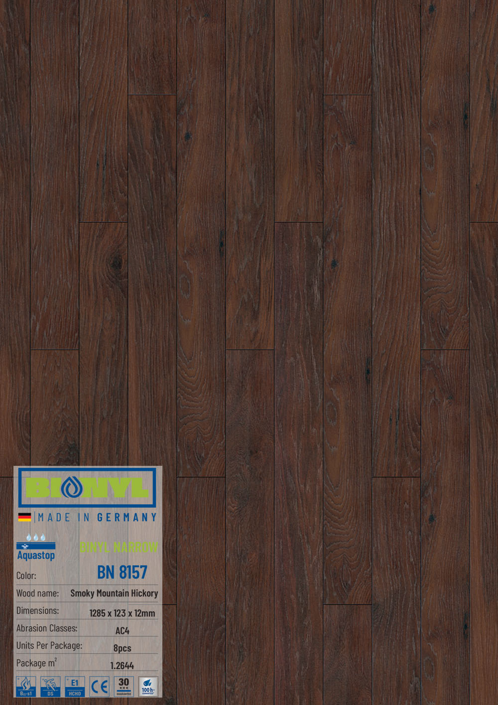 Sàn gỗ Binyl cao cấp nhập khẩu 100% từ Đức. Đây là một thương hiệu mới của năm 2020 với nhiều màu sắc đẹp. Ưu điểm nổi trội của sàn gỗ công nghiệp Binyl Đức là khả năng chịu nước tốt. Binyl là 1 thương hiệu của tập đoàn gỗ ván sàn hàng đầu tại Châu Âu là KRONOSPAN Lampertswalde. Được phân phối bởi KHO SÀN GỖ HÀ NỘI tại thị trường Việt Nam.
