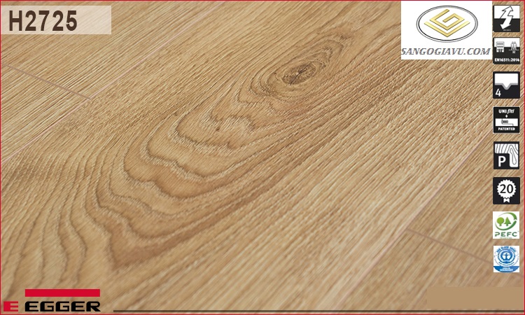 Điểm đặc biệt của H2725 chính là công nghệ của nó: Một mặt hàng siêu chịu nước có thể ngâm từ 5 – 7 ngày mà không hè cong vênh hay phồng rộp, bề mặt AC4 với khả năng chống mài mòn – trơn tượt – trầy xước giúp sàn gỗ luôn mới.