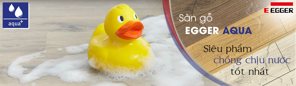 - Sàn gỗ công nghiệp Egger có tính năng chịu ẩm cao nhờ công nghệ Aqua+ xuất phát từ ý tưởng lót sàn gỗ cho nhà tắm, nhà bếp và hành lang.